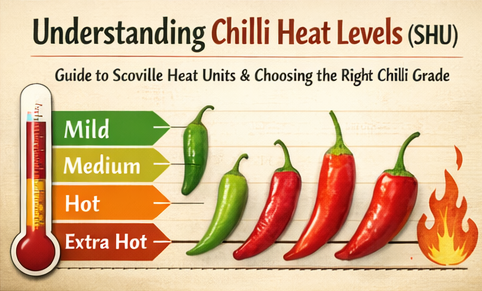 Learn how Scoville Heat Units (SHU) measure chilli heat, and how to select the right chilli grade for your export and food business needs.